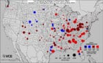 High-resolution maps detailing the marginal cost of energy (MCOE) in 2018 and 2025 for existing U.S. coal-fired power plants compared with building new wind or solar generation resources within 35 miles.