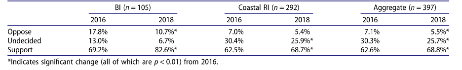 Using a mixed methods approach, the research team used a yearly survey from 2016 to 2018 of Block Island residents and a random sample of mainland residents, along with semi-structured interviews focused on survey participants who reflected Rhode Island demographics.