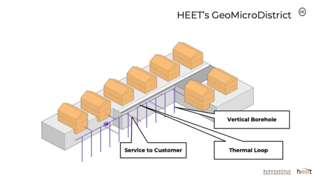 If successful, the climate and energy benefits of the Massachusetts “geo-grid” model could be significant. The connected ground-source heat pumps eliminate methane emissions from gas combustion and offer a low-carbon heating and cooling option. Well-located systems also tend to be more efficient than other options. This is because the fluid used in the system reflects the temperature below the surface, staying around 55°F. This temperate stable temperature helps reduce the heat pump’s electricity use compared to alternatives such as heat pumps that draw outside air.