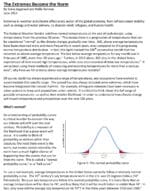 This paper discusses why small changes in average temperature lead to large changes in extreme weather, describes the upward shift in what are considered “normal” temperatures over time, illustrates the changing odds of extreme events with a moving bell curve, and points out regions that will become drier or wetter. The paper concludes by emphasizing that humans are responsible for these shifts, and there are solutions including emissions cuts and adaptation measures.