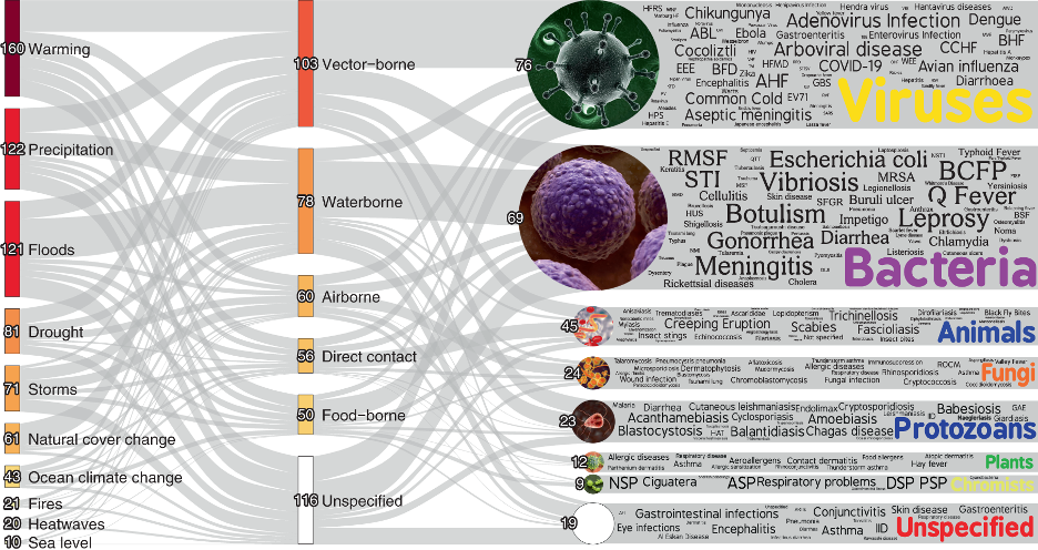 Camilo Mora et al., “Over Half of Known Human Pathogenic Diseases Can Be Aggravated by Climate Change,” Nature Climate Change 12 (2022): 869-875.
