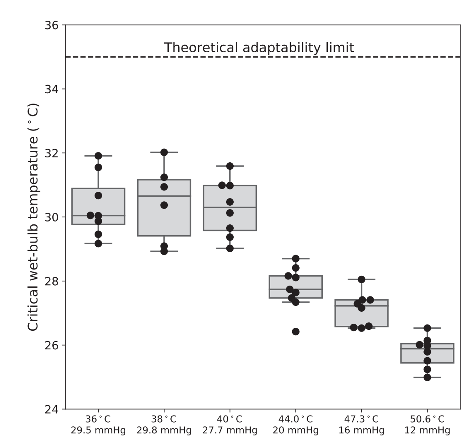 Daniel J. Vecellio, S. Tony Wolf, Rachel M. Cottle, and W. Larry Kenney, “Evaluating the 35C Wet-Bulb Temperature Adaptability Threshold for Young, Healthy Subjects (PSU HEAT Project),” Journal of Applied Physiology 132 (2022): 340–345, https://doi.org/10.1152/japplphysiol.00738.2021.