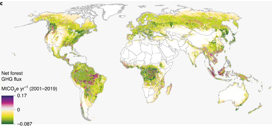Harris, N.L., Gibbs, D.A., Baccini, A., Birdsey, R.A., De Bruin, S., Farina, M., Fatoyinbo, L., Hansen, M.C., Herold, M., Houghton, R.A. and Potapov, P.V., 2021. Global maps of twenty-first century forest carbon fluxes. Nature Climate Change, 11(3), pp.234-240.