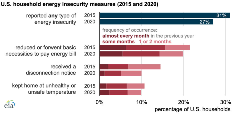 Energy burden, insecurity measurements of household income spent on energy expenses, and energy limiting behaviors must also be closely monitored to ensure that weatherization, efficiency, and renewable energy projects effectively reduce energy insecurity for vulnerable communities.