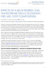 The U.S. Chamber of Commerce’s proposal to raise the federal fuel user fee (gas tax) $0.25 per gallon has driven debate over U.S. transportation funding. This research note finds the proposal would generate $1.1 trillion in federal government revenue by 2050 and cost U.S. drivers $40 billion per year by 2025. It would also increase annual EV sales by 210,000 per year and add 2.5 million total additional EVs to U.S. roads while reducing annual fuel consumption 30-38 million barrels and cutting total fuel use more than 1.3 billion barrels, both by 2050, and would equal a national carbon tax of $29 per ton.